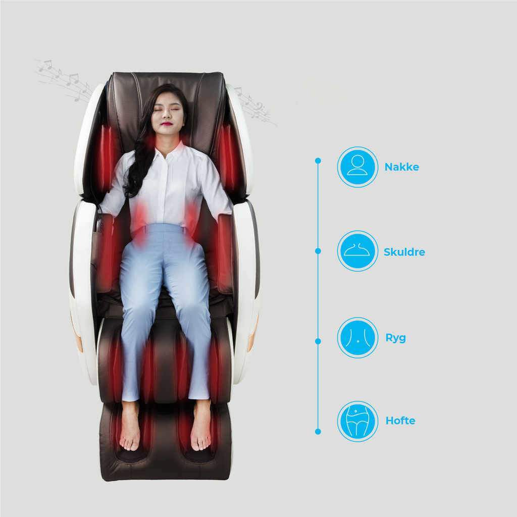 OGAWA Smart Vogue Prime is uitgerust met de revolutionaire S + L Track-technologie die uw lichaam volledig ontspant. De stoel is speciaal gericht op de rug, het middel en de heupen, waardoor pijn wordt verlicht en een beter gevoel van welzijn wordt bevorderd.