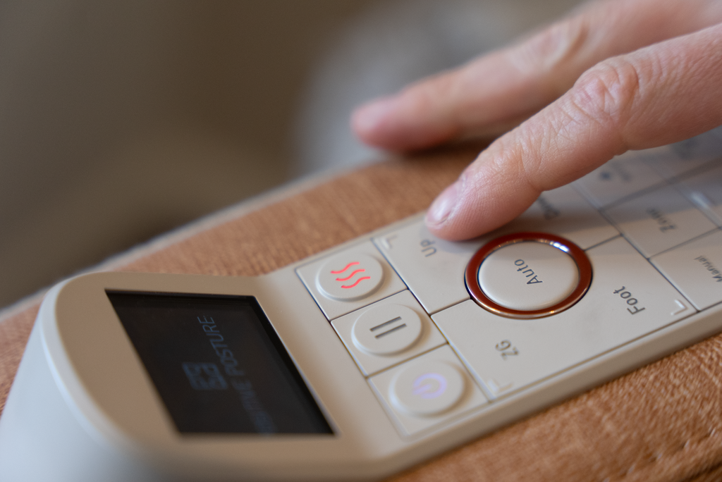 in een rechte stoelpositie